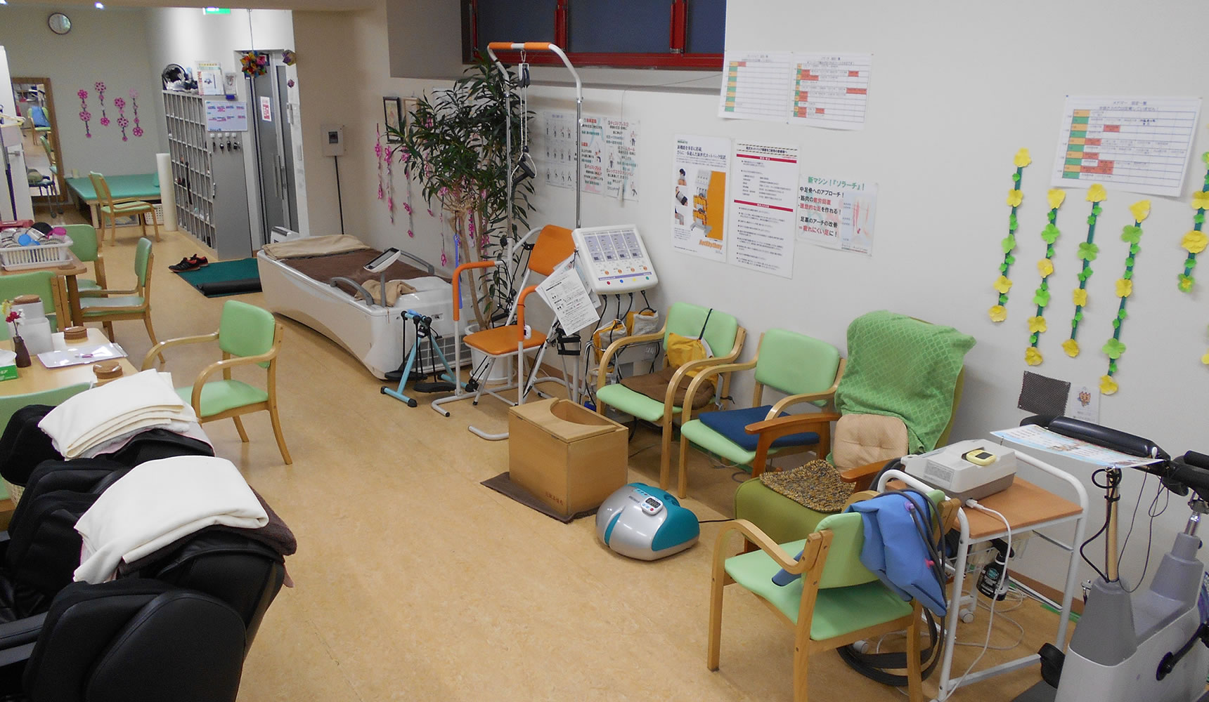リハ・アシストホンダでは、個別リハビリだけではなく、筋力向上マシンやリラクゼーション機器も利用し、様々な面から利用者様の悩みを解決できる様々な方法を提供しております。